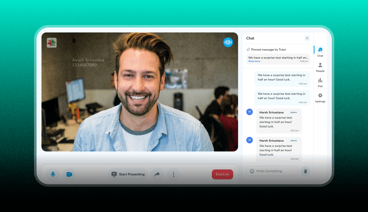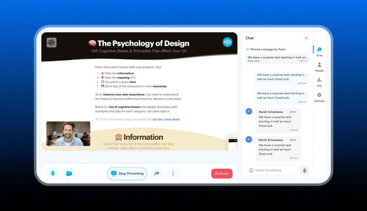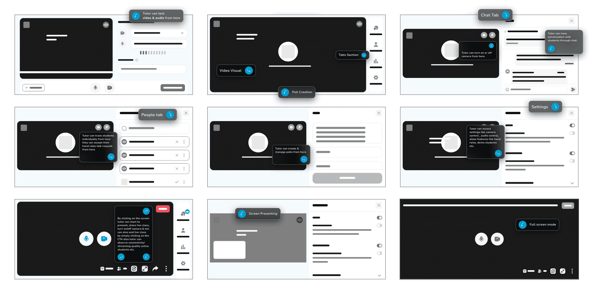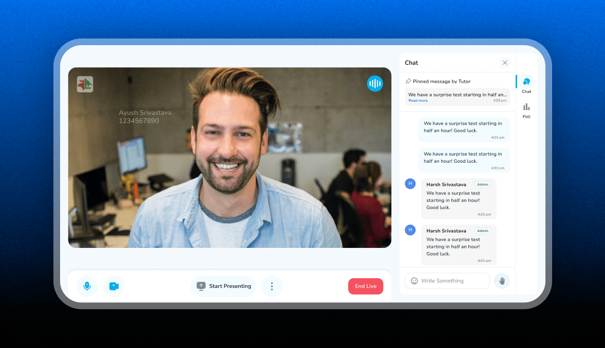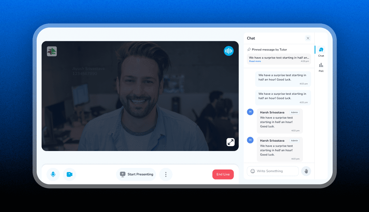 Course purchased students can use all the features like Chat, Poll, Hand raise, they can present their screen to the tutor as well.