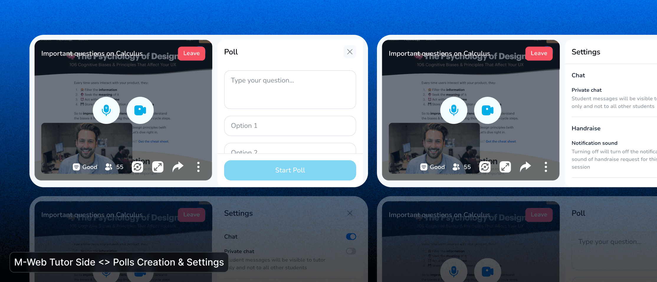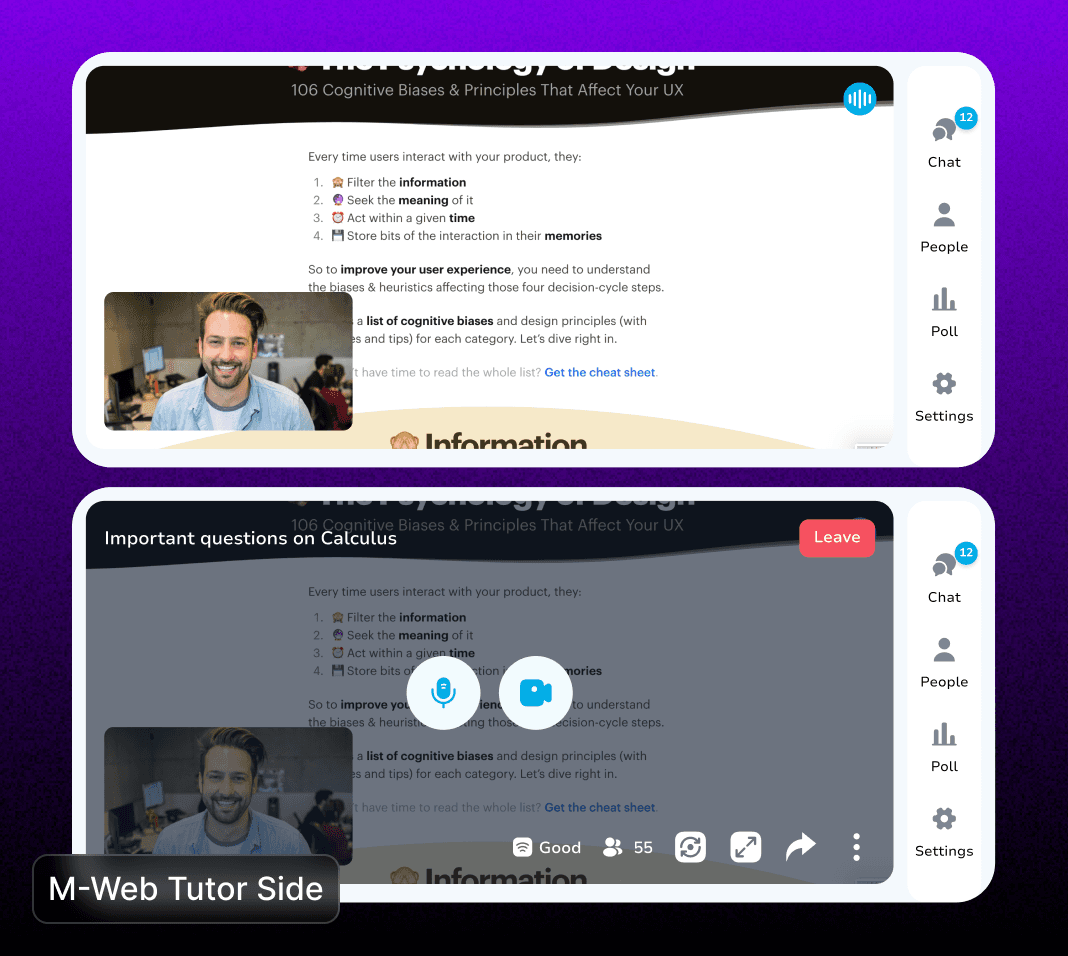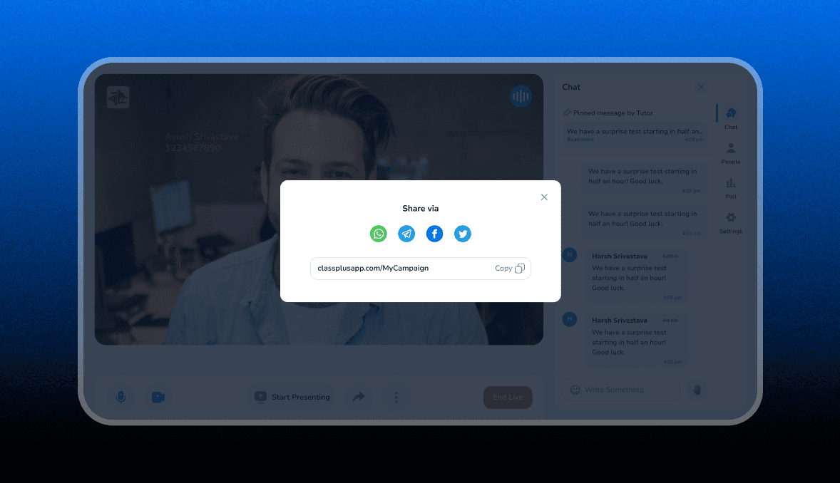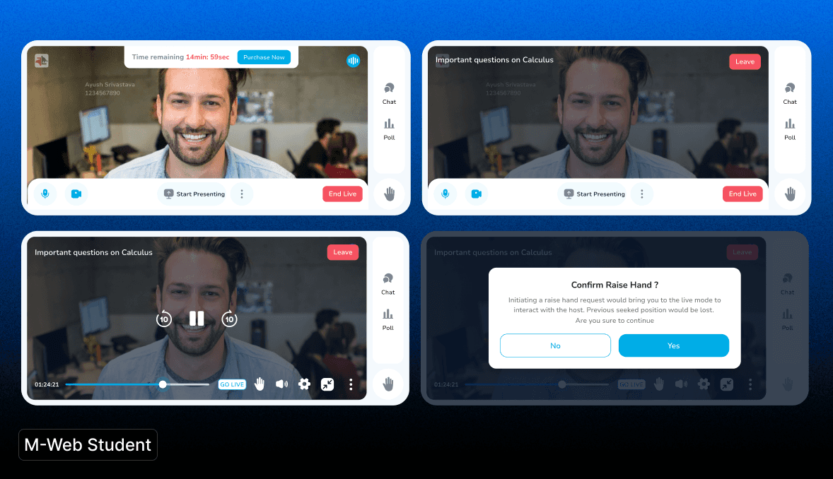 Course purchased students can use all the features like Chat, Poll, Hand raise, they can present their screen to the tutor as well.