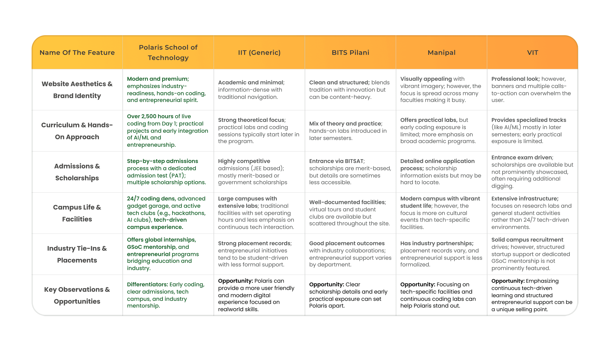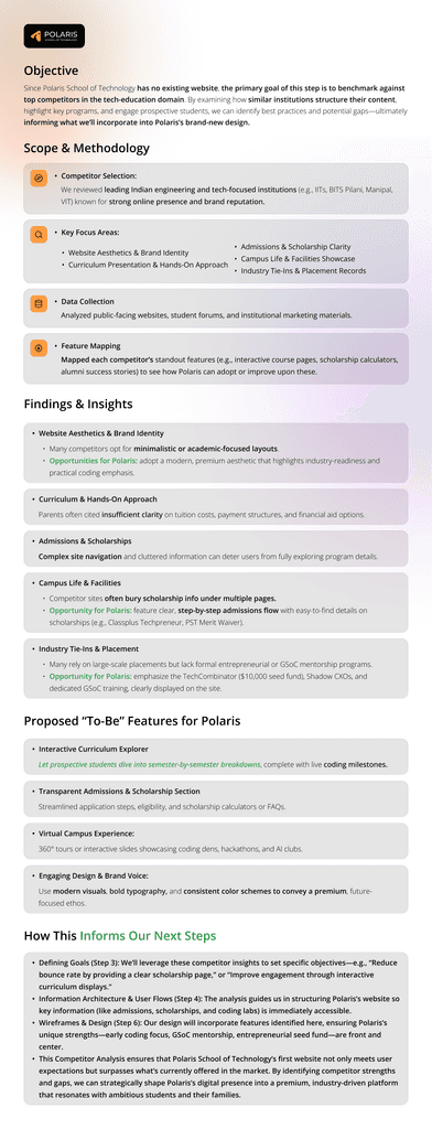 This competitor analysis helps define the essential features and strategic opportunities to ensure Polarisโs website stands out in a competitive landscape.