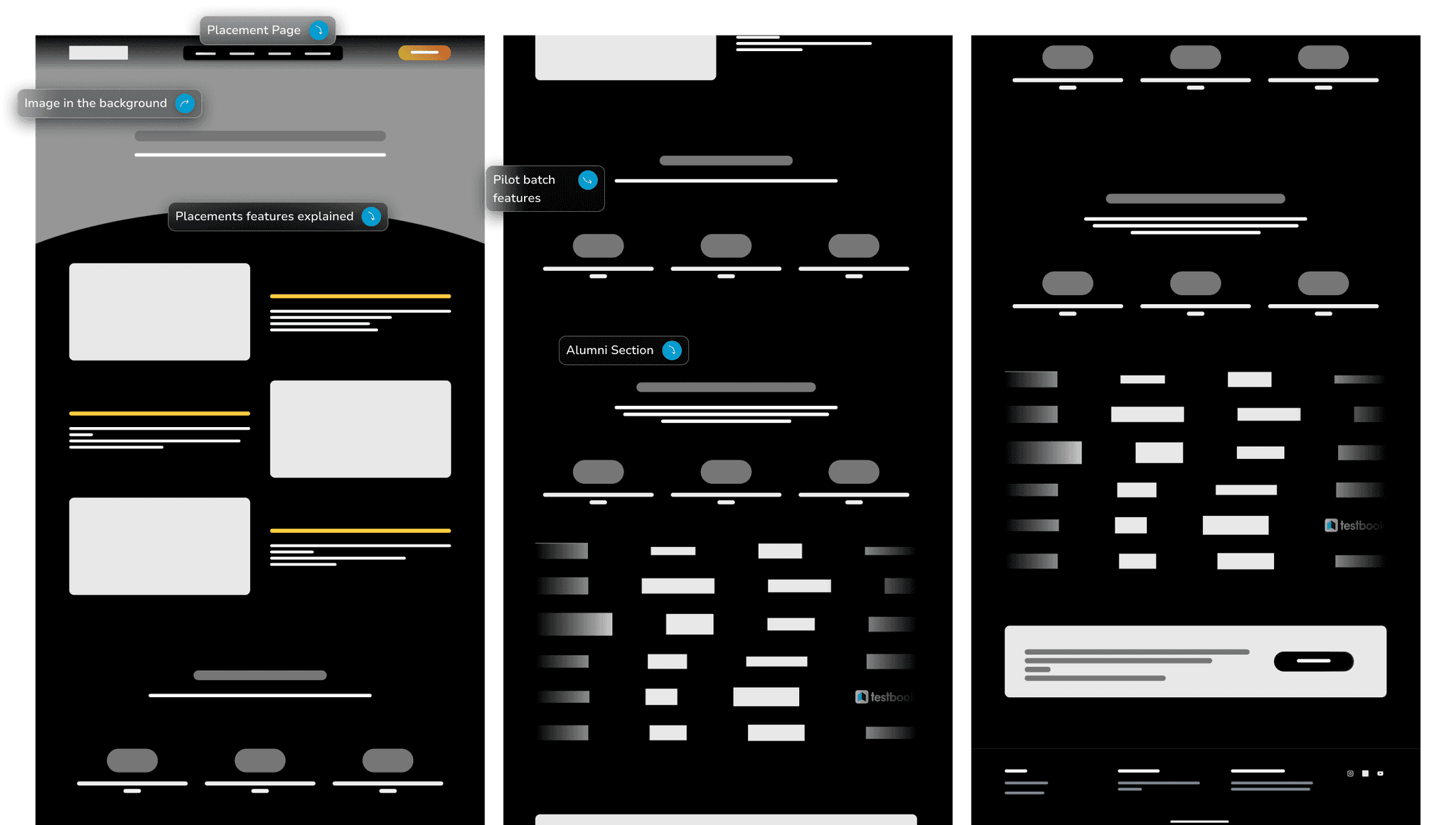 Wire Frames <> Placements Page